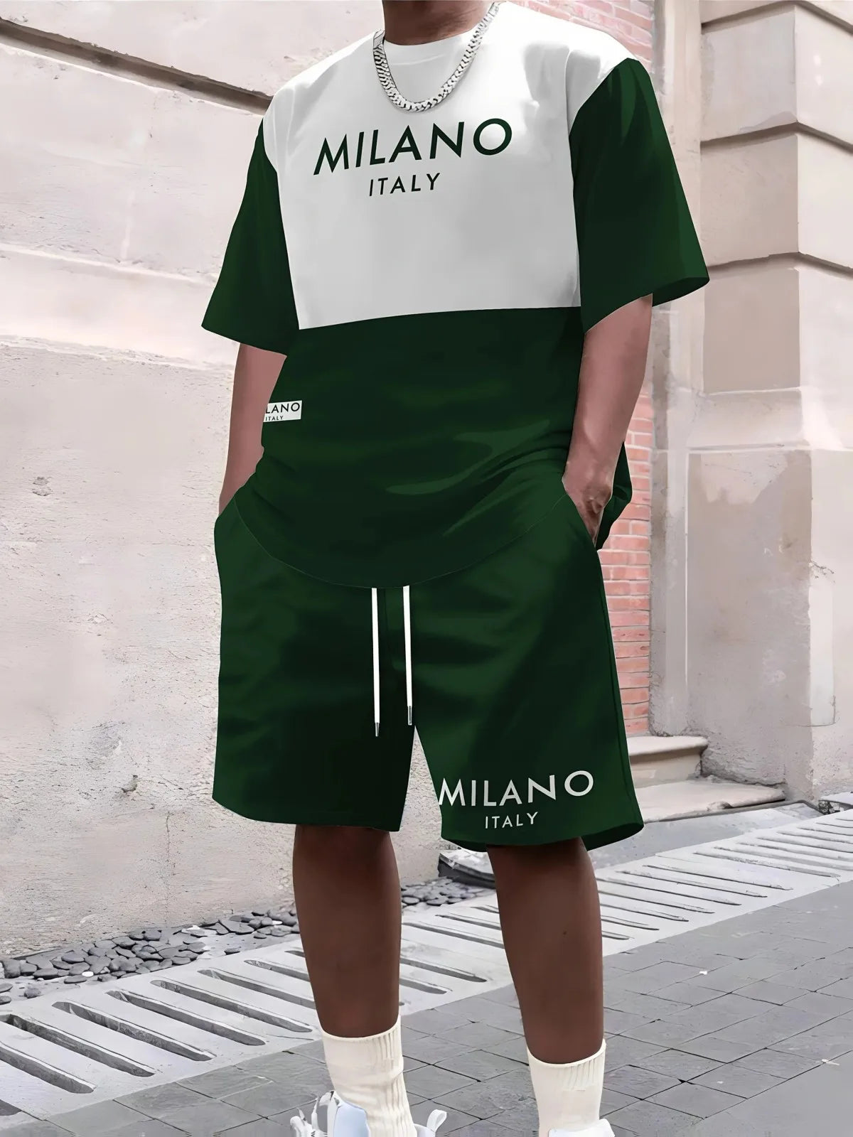 2025 New Summer Men's Letter Printed Comfortable and Breathable Round Neck T-shirt and Shorts Set Solid Color Colo Sportswear