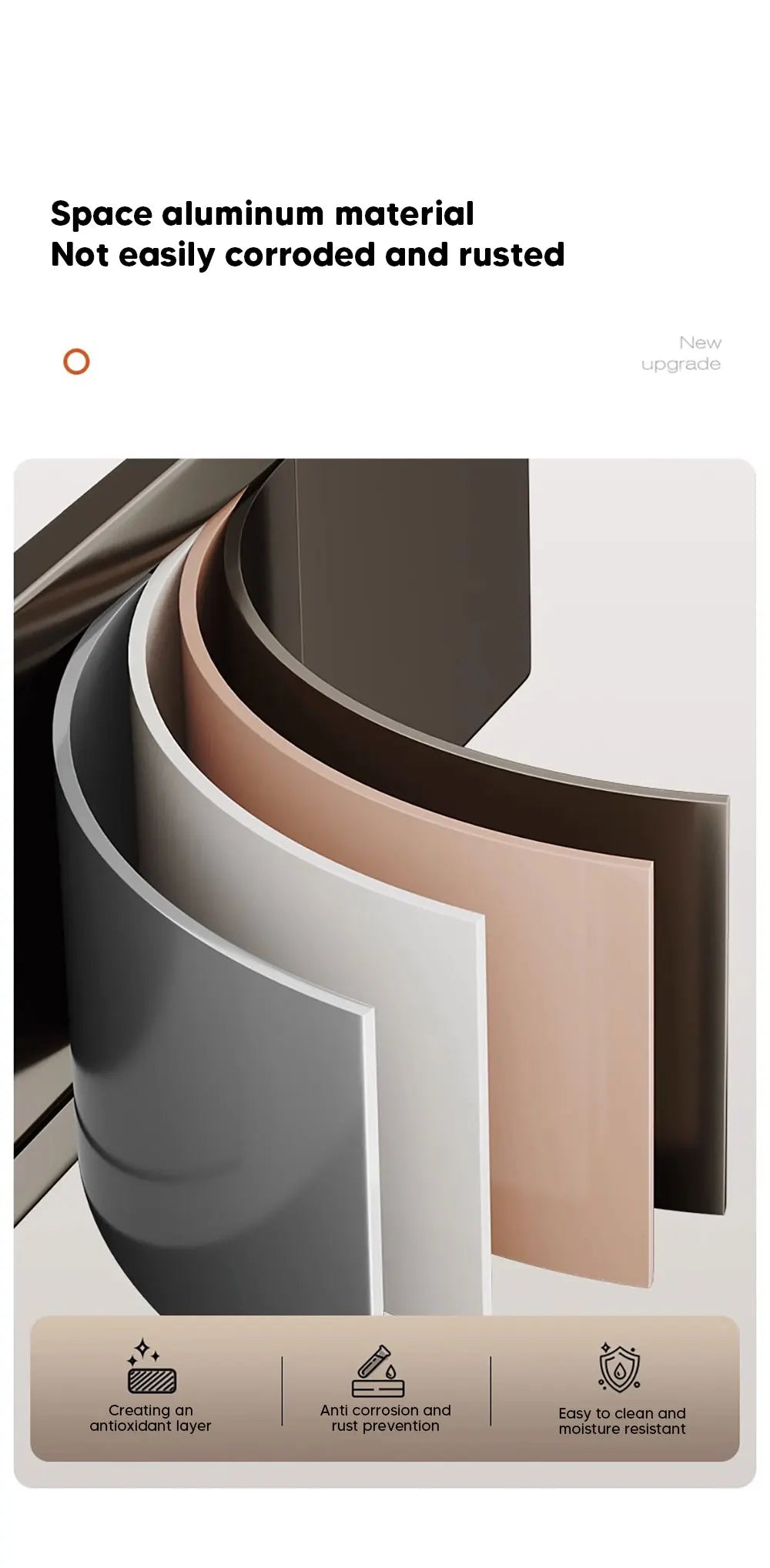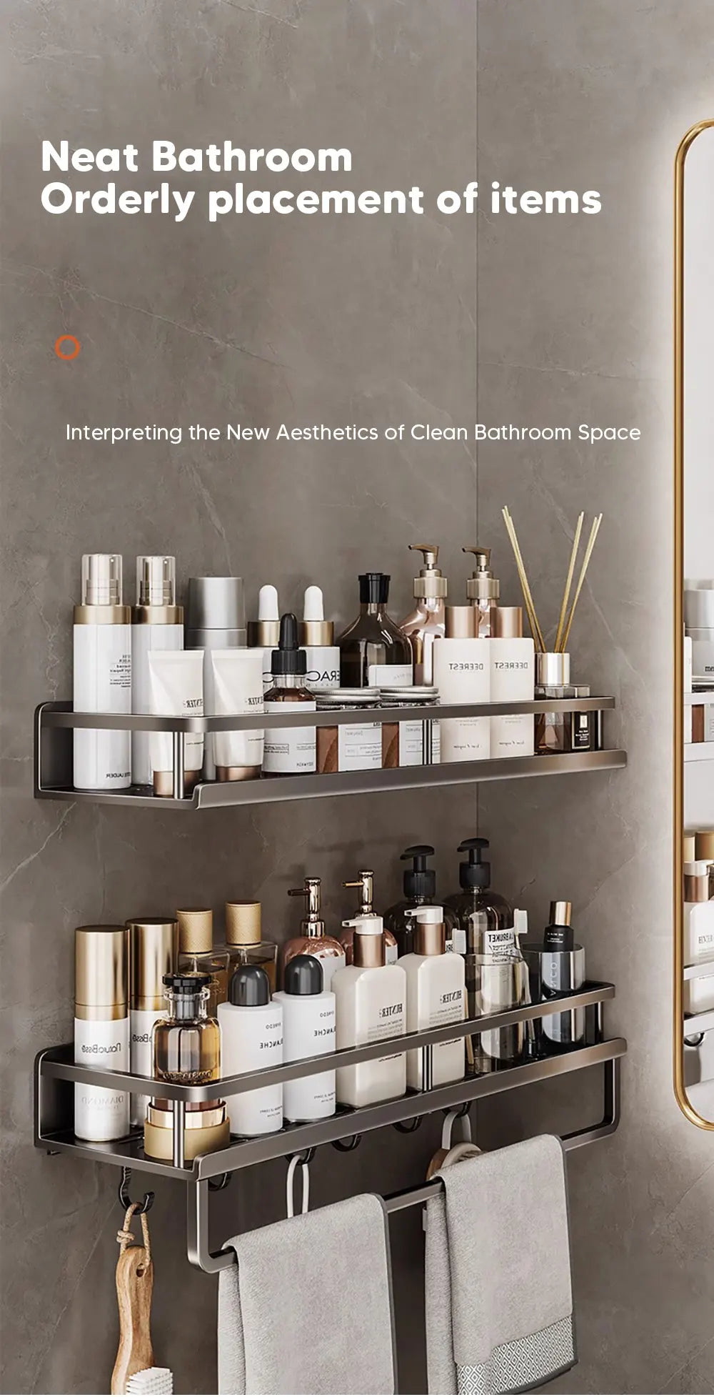 Compared to stainless steel or spray painted finishes, our bathroom shelves are made of space aluminum, which is more resistant to corrosion and scratches and provides superior texture. The surface is specially treated to resist oxidation in humid environments, ensuring that the shelves maintain a brand new appearance for a long time.