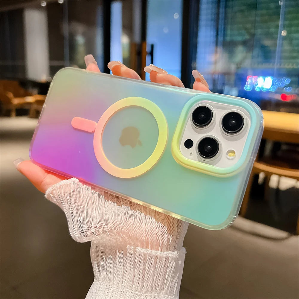 Aurora Gradient Matte Magnetic Case For iPhone 16 15 14 Pro Max 16 Plus 13 Laser Colorful Rainbow for Magsafe Shockproof Cover