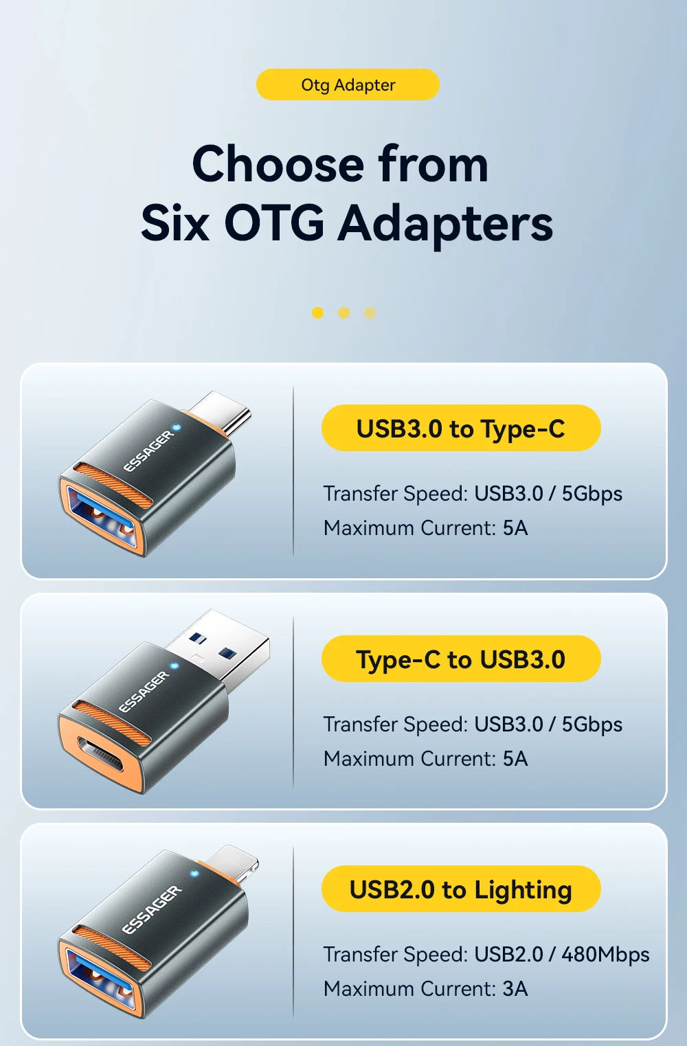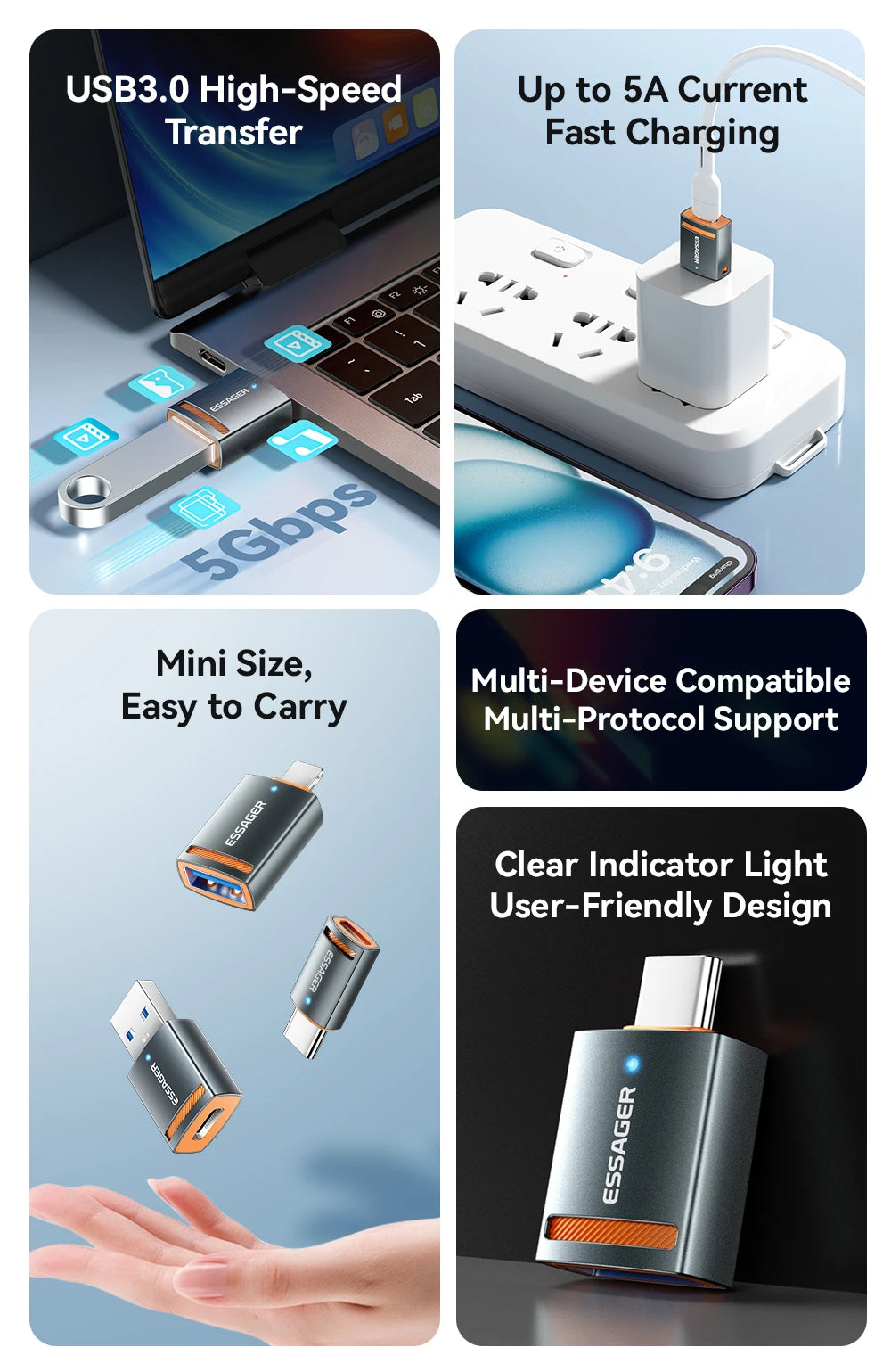Essager USB3.0 OTG Adapter Type-C USB-A Micro Female to USB Micro iP Type-C Male Converter For Macbook Xiaomi iPhone OTG Adapter