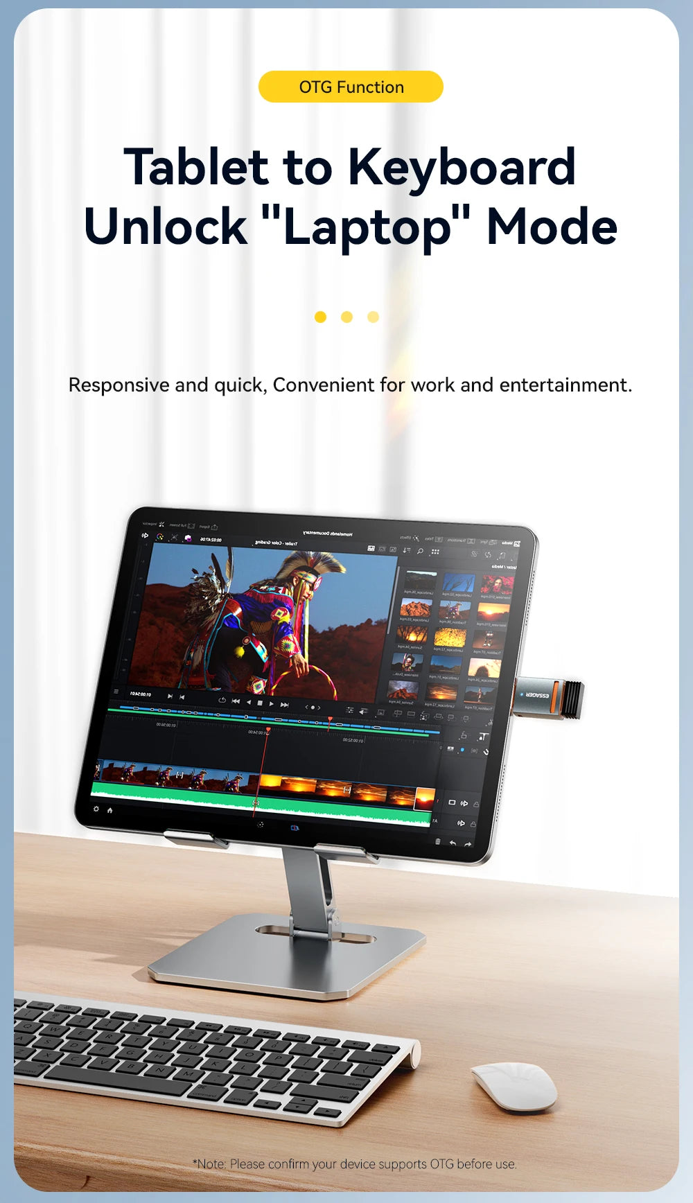 Type-C end: laptops, tablets, mobile phones (note: both phones and tablets need to support OTG function)