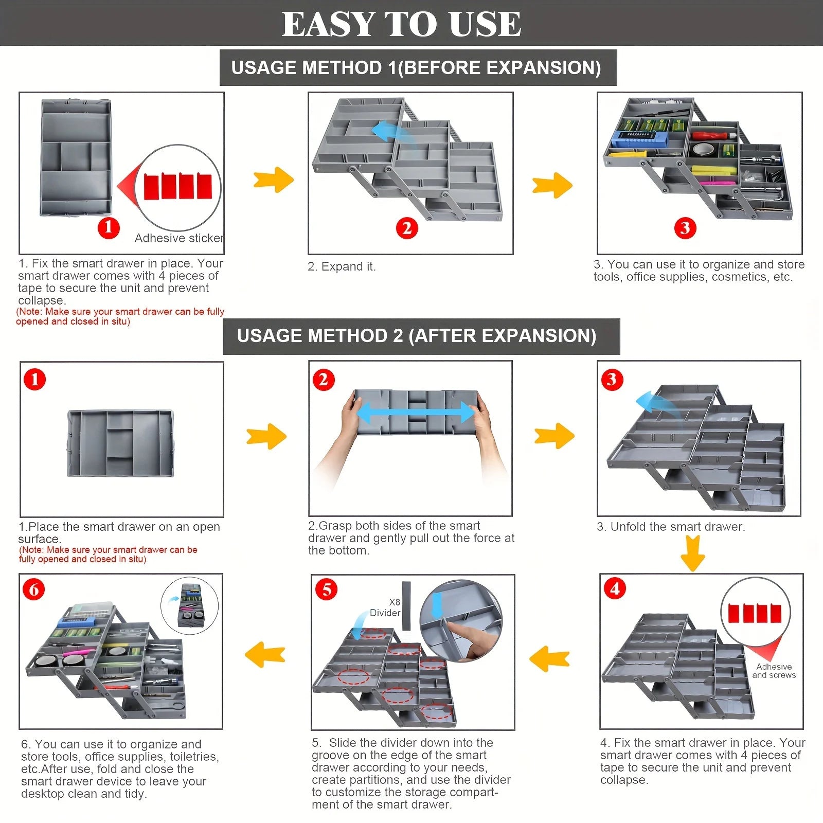Foldable Drawer Organizer, Multifunctional Storage Box, Suitable for Kitchen Utensils, Tools, Jewelry, Makeup