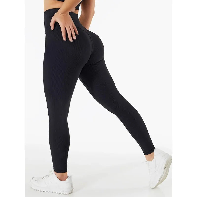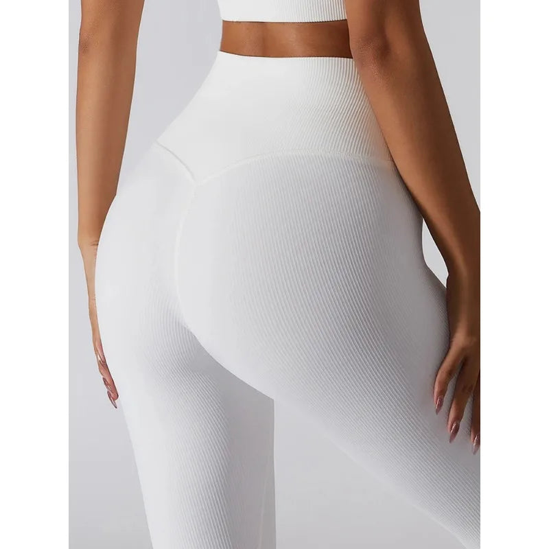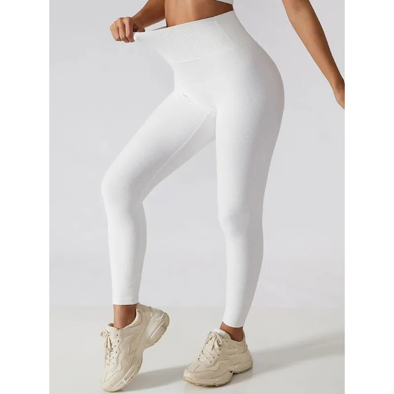 High Waist Yoga Pants Women Seamless Sport Pants Ribbed Knitted Fitness Leggings Solid White Running Pants Quick Dry Gym Leggins