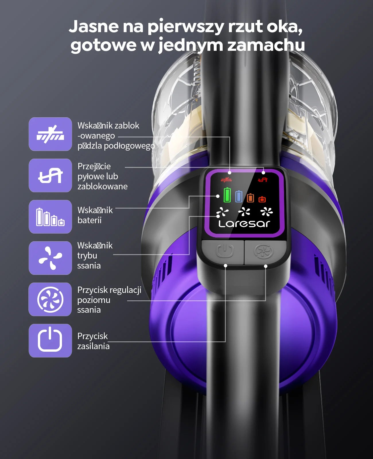 The latest version of the Laresar X11 vacuum cleaner has been updated. The difference is that the vacuum cleaner screen adopts a brand new pattern and no longer displays the percentage of battery life. Please note before purchasing and do not apply for a return or refund due to this. Thank you