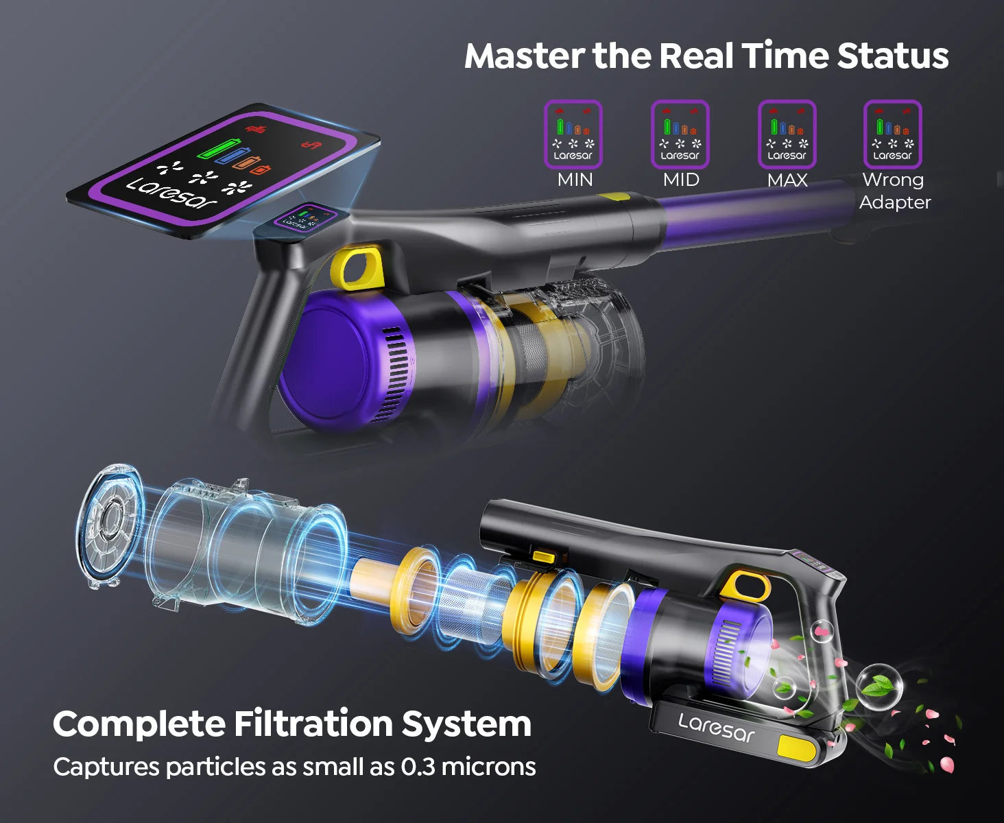 Laresar X11 550W 55000PA Suction Power Cordless Vacuum Cleaner Handheld Smart Home Dust Cup 60 Mins Runtime 3 Pcs Filte Set