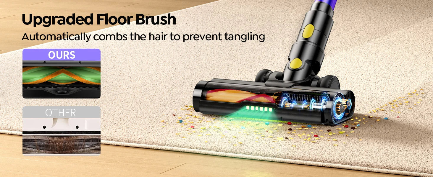 ⏰【Effectively reduces hair tangles and allows for easy hair cutting. 】The floor brush has bright forward facing green LED lights and a rotatable flexible brush stick,