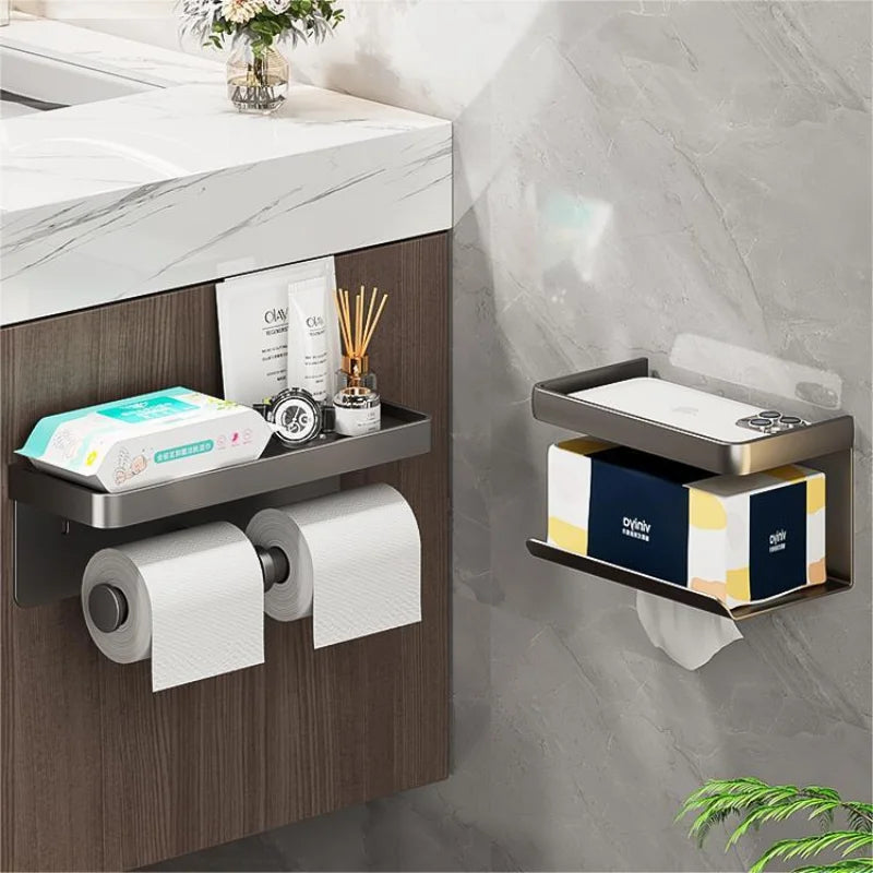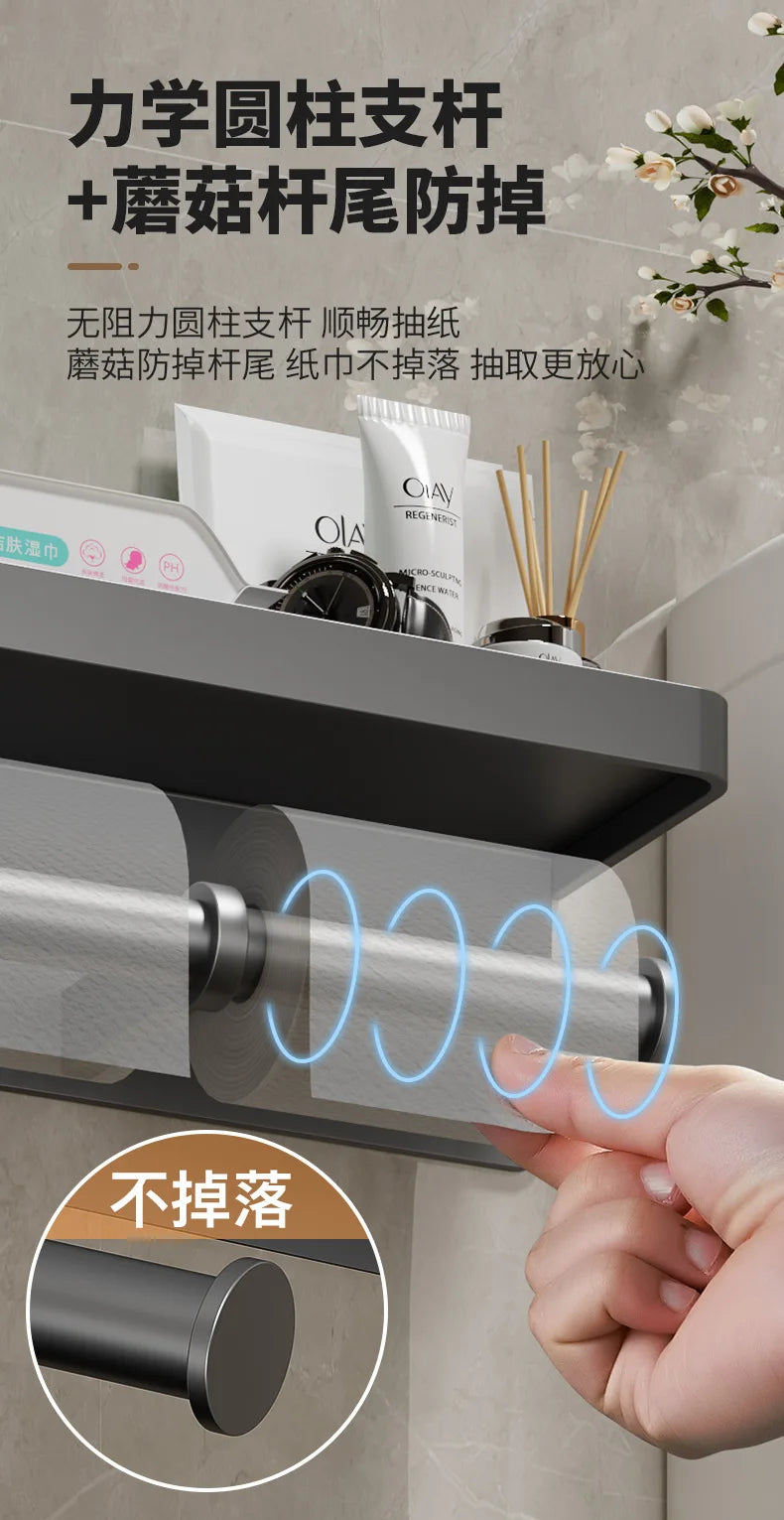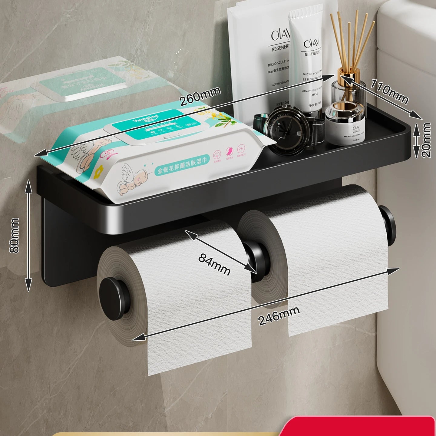 Large Toilet Paper Holder Wall-Mounted Paper Roll Holder With Storage Tray Toilet Organizer Phone Stand Bathroom Accessories