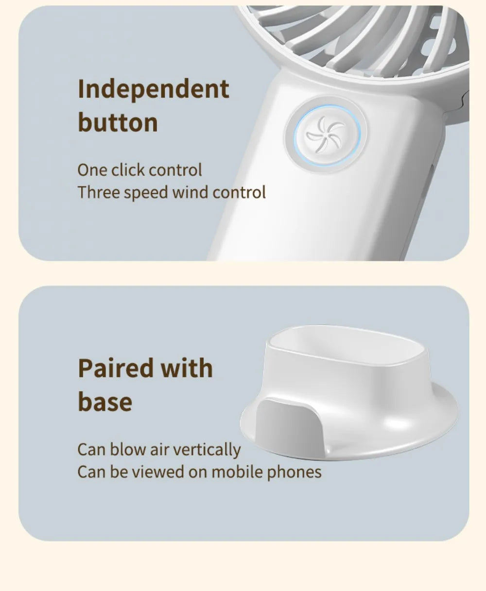 Portable Mini Fan USB Outdoor Handheld Fan with Desktop Phone Holder 3Wind Adjustments Long Working Life Multi-function Mini Fan