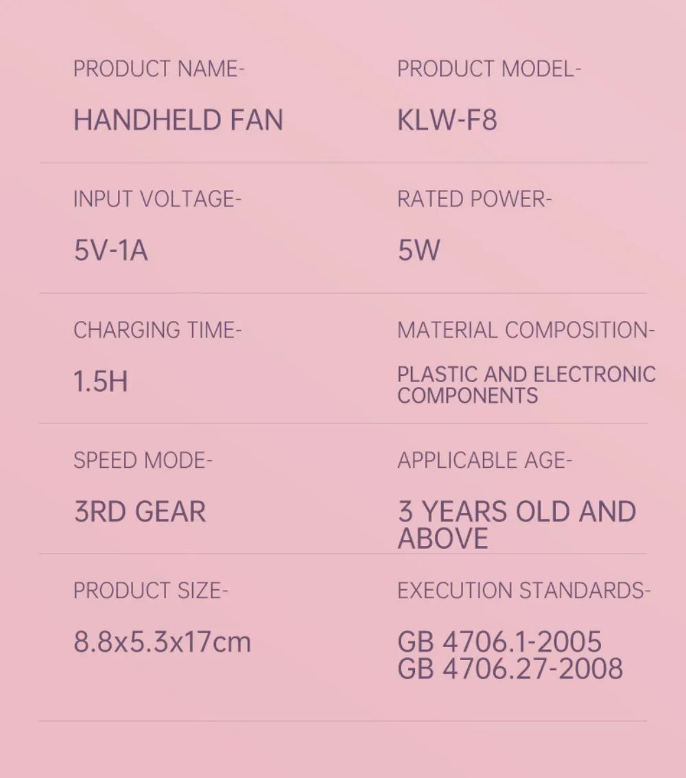 Model Number: Mini Portable Handheld Fan