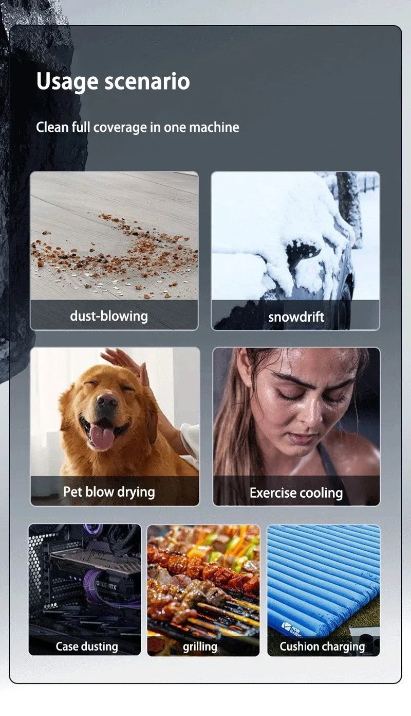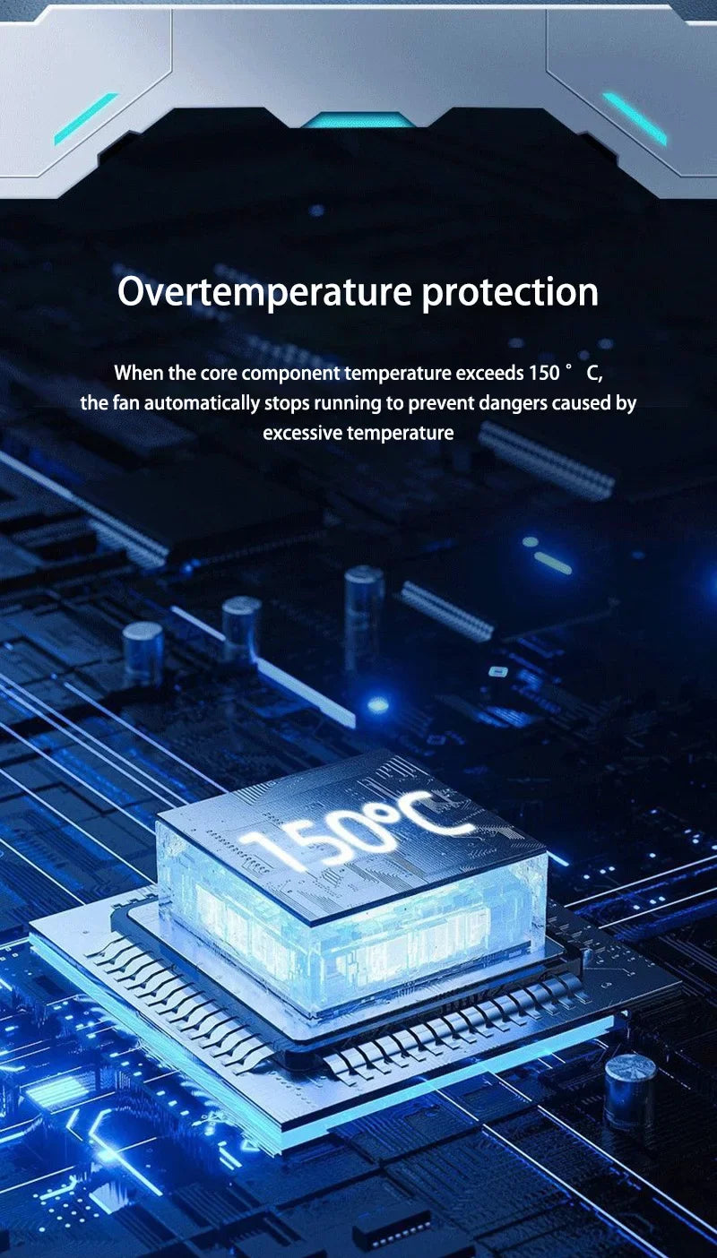 4.  Infinite speed regulation, easy to operate with one hand, two in one switch speed regulation, increasing air volume from small to large, better protecting the motor.
